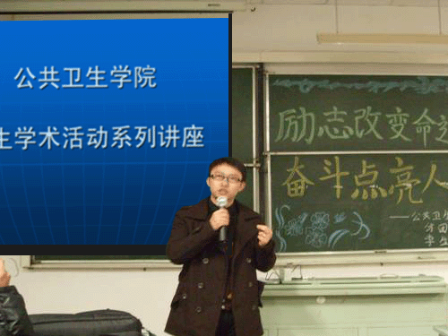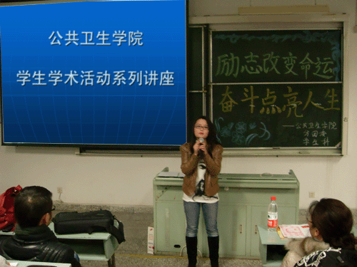 太阳成集团tyc122ccvip员工学术活动系列讲座自去年正式开展以来,已经举办了两期,在员工中反响很好。以前,主要是邀请本院的老师做专业知识方面的讲座,这一次,荣幸邀请到了著名的新东方公司贵阳分校的王茜老师和沈晓波老师作为主讲。此次讲座的主题是“励志改变命运,奋斗点亮人生”,吸引了公卫公司内外200余名同学到场聆听。两位老师从人生规划、励志奋斗到英语学习方法几个方面做了精彩的讲解,讲座生动活泼,客观务实,受到了现场同学的一致好评。