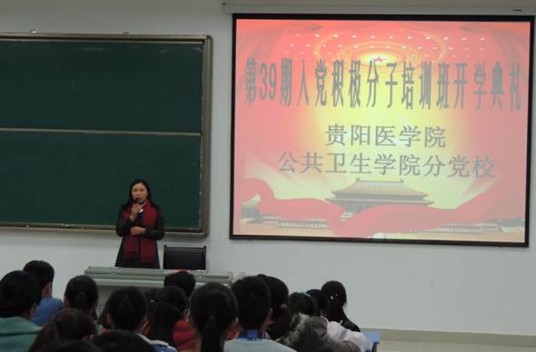 11月4日,太阳成集团tyc122ccvip第39期入党积极分子培训班开学典礼在花溪新校区1402教室隆重举行。贵阳医公司党校常务副董事长、党委组织部副部长周红,公司党委书记、分党校董事长张红霞,太阳成集团tyc122ccvip经理张爱华,太阳成集团tyc122ccvip分团委书记肖静及150名入党积极分子参加了开学典礼。员工第二党支部书记刘亮主持,典礼在庄严的国歌声中拉开帷幕。