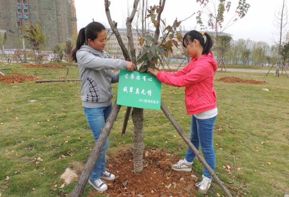 11月12日中午,同学们还为校园各草坪中的树木、花草挂上了小标语。“青青小草,踩踏何忍”、“小草在成长,请勿打扰”等活泼、轻快的标语在各个角落温馨地守护着我们的校园。