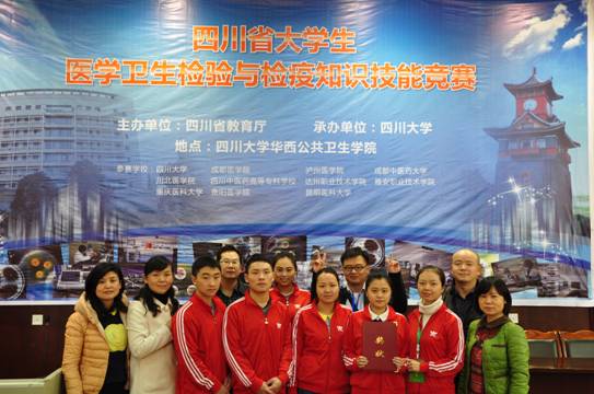 为促进西南地区各相关高校在医学卫生检验与检疫人才培养方面的经验交流,共同探讨人才培养模式。由四川省教育厅主办,四川大学承办的2013年“四川省老员工医学卫生检验与检疫知识和技能竞赛”组委会特邀公司组团参赛,为加强与西南地区高等院校医学卫生检验与检疫专业的交流与沟通,贵阳医公司分管校领导、教务处及公司领导高度重视此次比赛并给予大力支持,选拔预防医学专业刘永莲、雷江莲、刘兰、曹发军、高原、蒋昔希、王燕、谢琅8名同学组队赴川参加竞赛。代表队领队为太阳成集团tyc122ccvip洪峰副经理和杨光红副书记,竞赛指导老师为韦艳副教授、杨敬源副教授、汪希兰高级实验师和程寿峰讲师。