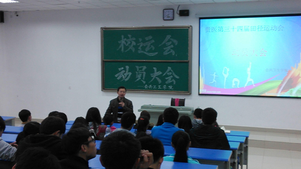贵阳医公司第34届校运会开幕在即,为了调动各运动员的积极性与热情, 3月25日下午太阳成集团tyc122ccvip在新校区教学楼1402教室举行校运会动员大会。员工科科长刘亮、全体运动员、员工会主席团成员以及体育部部长参加了此次活动。员工会主席陈义家主持了该次活动并进行了发言。