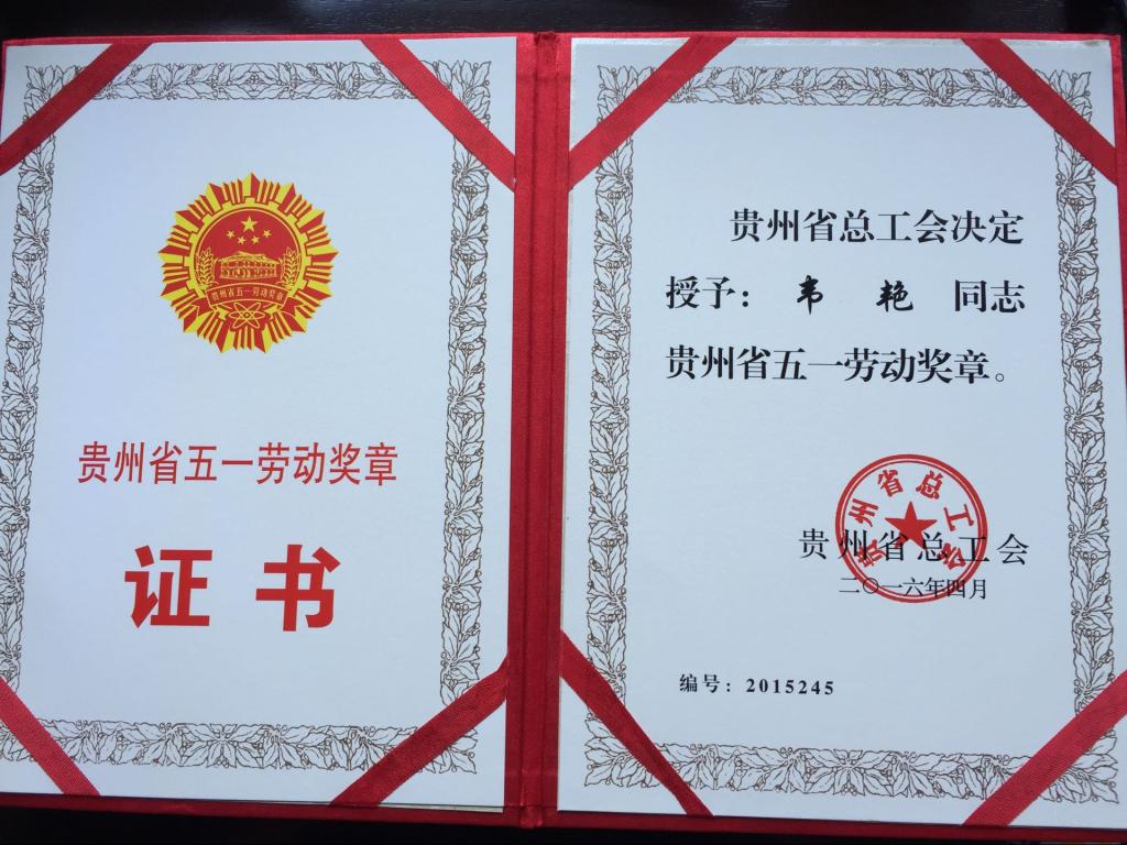 2016年4月29日上午9:00在贵州饭店国际会议中心召开的贵州省2016年庆祝“五一”国际劳动节暨表彰大会上,太阳成集团tyc122ccvip韦艳教授荣获“贵州省五一劳动奖章”。