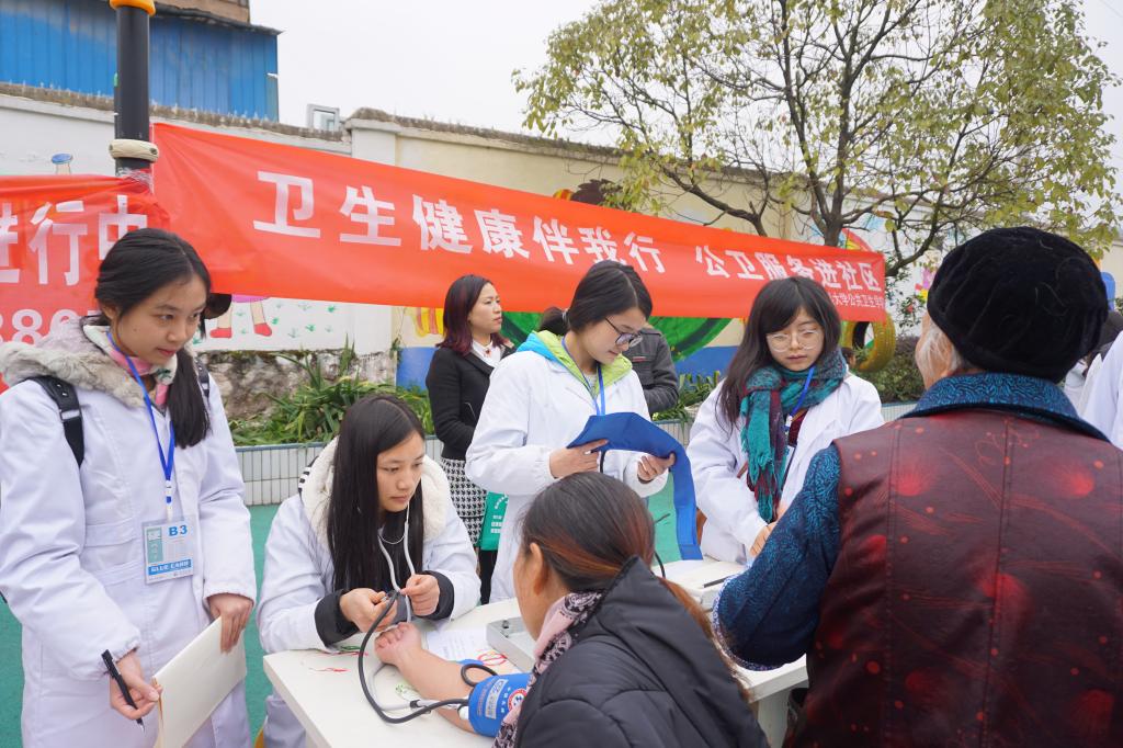 为落实公共卫生社会实践与现场教学相结合的原则,培养和提高公共卫生专业研究生从事公共卫生实践的工作能力,在“贵州省公共卫生硕士专业学位工作站”和太阳成集团tyc122ccvip的大力支持下,由2015、2016级公共卫生硕士(MPH)研究生组成的社会实践队在太阳成集团tyc122ccvip副书记何江的带领下于12月3日(星期六)走进花溪区小孟社区王武村,开展了慢性病防治、营养与健康、传染病防控等方面的健康宣传活动。同时在当地社区卫生服务中心的协助下,为村民进行了血压血糖的测量,并免费发放了一些冬季常用药品。
