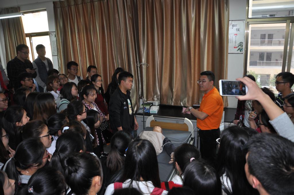 强化训练主要利用课余时间进行,共持续5周。培训团队由贵医附院急诊科、贵阳市疾病预防控制中心的多位资深专家及公司的高年资教师共同组成。培训内容主要分为三个板块:一是临床基本操作技能和应急救援培训,包括心肺复苏、人工呼吸、病人搬运和急救等;二是公共卫生基本操作技能培训,包括个人防护、样品采集、现场检测仪器操作、卫生处理等;三是公共卫生案例分析及突发公共卫生事件处置培训,包括传染病、慢性非传染性疾病、急性职业中毒、食物中毒、环境污染事件、突发公共卫生事件等。培训期间,老师和同学们踊跃参与,认真听讲,并做好记录。课后积极深入实验室及技能室复习、实践。