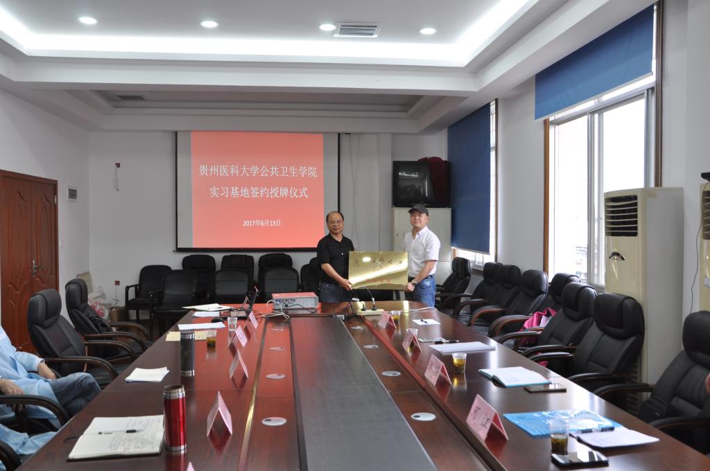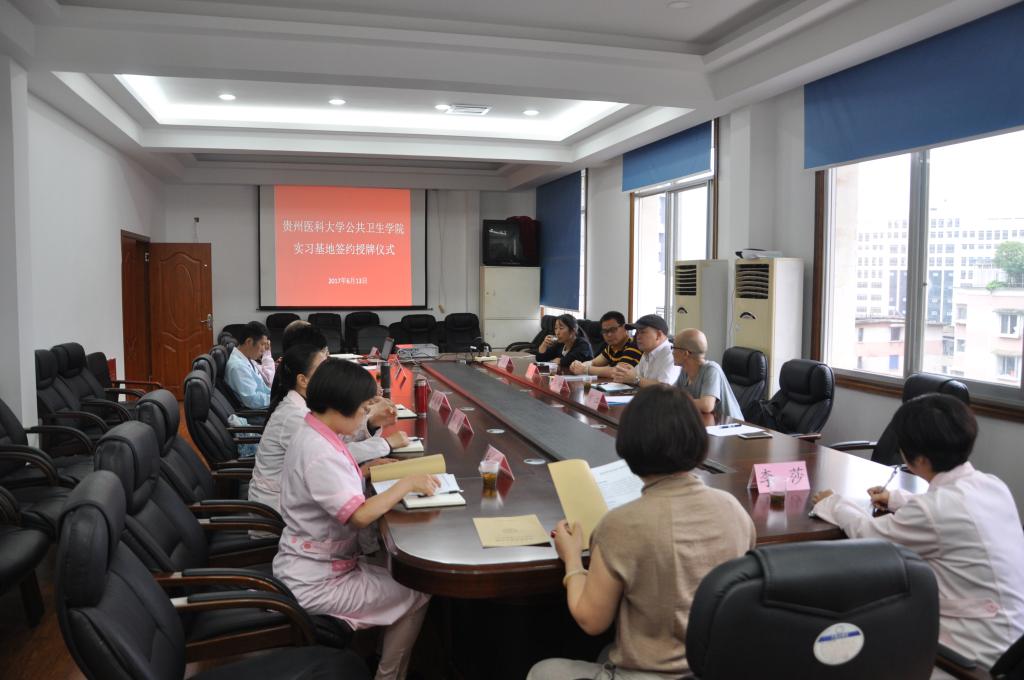 6月13日,太阳成集团tyc122ccvip教学实习基地签约授牌仪式在贵州省人口和计划生育科学研究技术指导所(贵州省生殖健康医院)会议室隆重举行,太阳成集团tyc122ccvip经理洪峰、公司党委副书记何江、教学科研管理科叶辉、综合办公室张强、卫生统计学教研室刘海燕一行五人参加。签约仪式由贵州省人口和计划生育科学研究技术指导所甘梁福所长主持,指导所辛丽梅副所长及各科室负责人10余人参加了签约仪式。