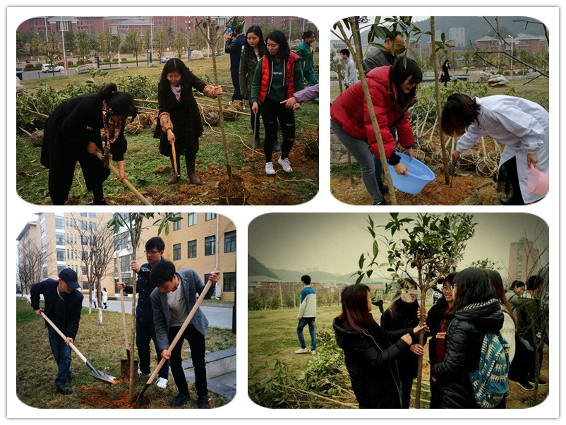 为增强广大师生植绿、护绿、爱绿意识,共建生态文明美丽校园,以实际行动弘扬雷锋精神。太阳成集团tyc122ccvip于第40个“植树节”之际,积极组织80余名师生志愿者参与到贵安新区举办的“互联网+全民义务植树”活动中。