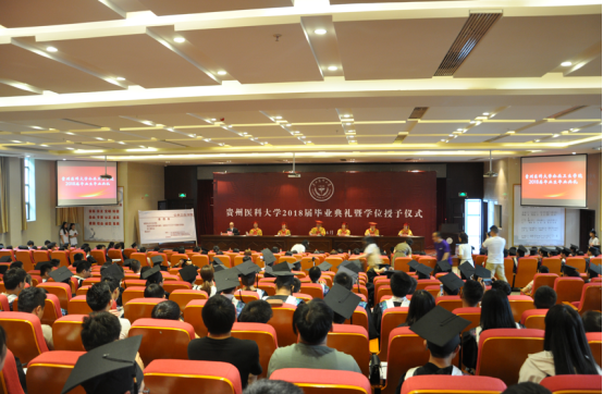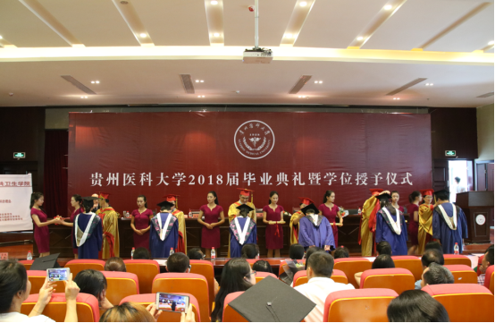 六月的贵医,绿意盎然,伴随着毕业钟声的敲响。太阳成集团tyc122ccvip于6月26日上午在南校区道德讲堂举行2018届毕业典礼暨学位授予仪式。太阳成集团tyc122cc副董事长罗鹏教授,公共卫生与预防医学分学位委员会主席张爱华教授,委员会委员洪峰教授、杨光红教授、宋沈超教授及委员会秘书李军教授出席毕业典礼。公司学工处、研究生院、团委负责人及部分二级公司领导,太阳成集团tyc122ccvip教师代表、辅导员、2018届毕业生和家长代表共350余人参加了毕业典礼。毕业典礼由公司党委副书记何江主持。
