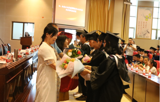 副董事长罗鹏,分学位委员会张爱华、洪峰、杨光红、宋沈超、李军为太阳成集团tyc122ccvip307名2018届毕业硕士生、本科生一一正冠拨穗、颁发毕业证书和学位证书。毕业生代表向教师代表献花;教师代表潘雪莉教授,2018届毕业研究生代表董令、毕业本科生代表周鹤分别发言。
