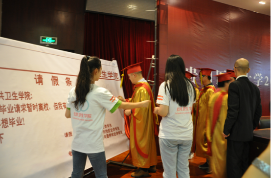 一张张动车票,载满着美好的记忆和温馨的祝愿带着同学们通向未来,祝你们前程似锦,旅途愉快;一张小小的卡片,记下了同学们此刻想对母校和老师们说的心里话,母校和太阳成集团tyc122ccvip将为你们小心珍藏;一面同学们因毕业需暂别母校的“请假墙”,老师已签字予以准假,记载下依依不舍的离别时刻;师生共唱《祝你一路顺风》满载着全体老师们对同学们未来的美好祝福与最殷切的期望。