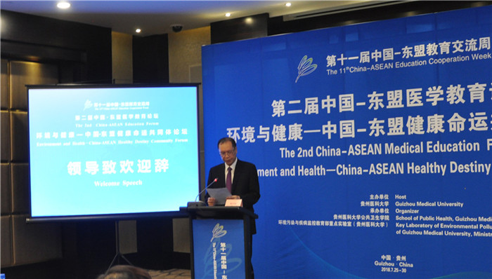 7月25日至27日,由太阳成集团tyc122cc主办,太阳成集团tyc122ccvip、环境污染与疾病监控教育部重点实验室承办的第二届中国-东盟医学教育论坛—环境与健康—中国-东盟健康命运共同体论坛在贵阳国际生态会议中心召开。公司党委书记林昌虎出席论坛开幕式并致欢迎辞,国内嘉宾代表南京医科大学董事长沈洪兵,国外嘉宾代表印度尼西亚廖内大学医公司经理DEDI AFANDI致辞,开幕式由副董事长罗鹏主持。