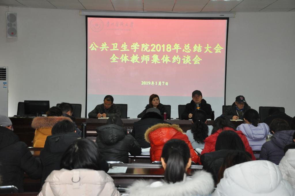 然后,洪峰对2018年公卫院的学科专业建设、公司产品改革、科研工作、团队队伍建设、员工思政工作、对外交流合作、社会服务方面取得的成绩和进步进行了总结,同时指出目前公司在行政管理、如何加强内涵建设、团队、员工就业观及创新能力、教改、科创、平台方面存在的困难和问题,并对2019年的重点工作进行了部署。同时,对公卫院绩效分配方案的修订作了详细的解读。