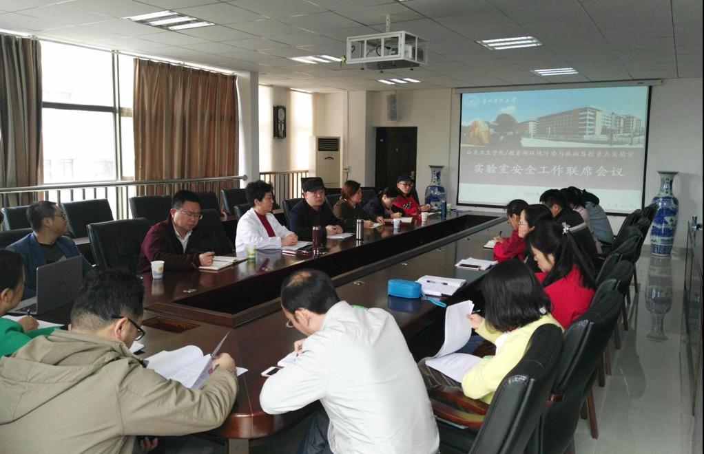 2019年4月11日上午,太阳成集团tyc122ccvip和教育部环境污染与疾病监控重点实验室于太阳成集团tyc122ccvip二楼会议室召开了实验室安全工作联席会议。太阳成集团tyc122ccvip经理洪峰、党委书记杨光红、副书记何江、副处级组织员刘亮及各学系/中心正副主任与教育部环境污染与疾病监控重点实验室主任张爱华、副主任李军及重点实验室各室负责人及管理人员参会。