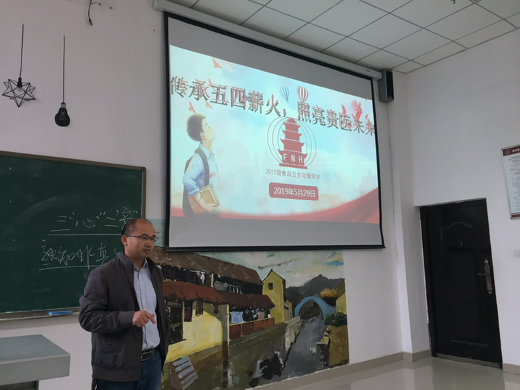 【公司发展规划处副处长李炳福与2017级食品卫生与营养学班】5月29日,李炳福在2017级食品卫生与营养学班级召开的“传承五四薪火 照亮贵医未来”的主题班会上,通过诠释百年五四精神的当代价值,号召新时代的贵医青年要做到“三心二意”,即要拥有恒心、耐心和专心,要锻炼坚强的意志和自我学习的意识。