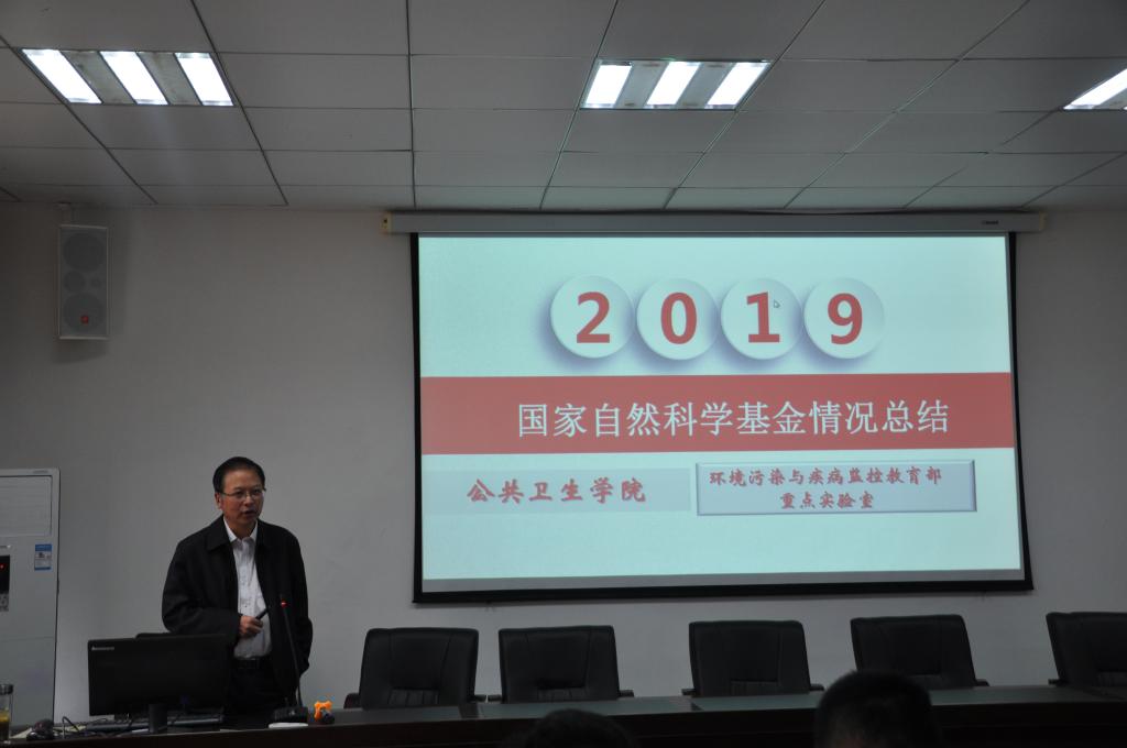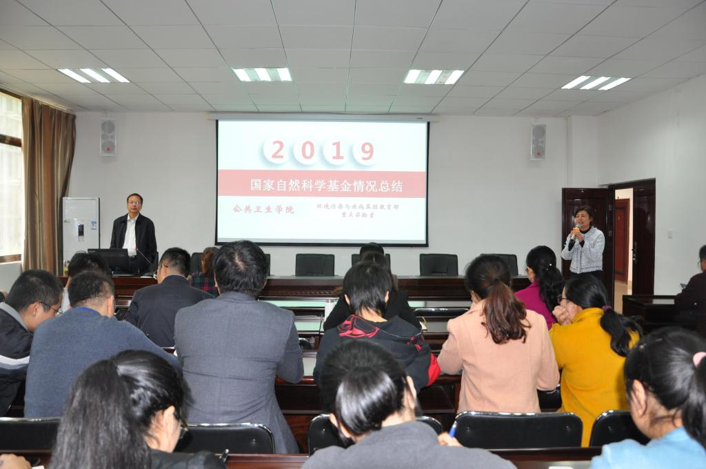 为切实做好2020年度国家自然科学基金的申报工作,进一步提高国家自然科学基金申报质量,10月22日,公司科技处郭兵处长、科技处项目管理科副科长柴月娥一行2人到太阳成集团tyc122ccvip进行国基申报培训并作进一步动员工作。调研会在博雅楼二楼学术报告厅举行,公卫公司党政领导班子、环境污染与疾病监控教育部重点实验室领导、各学系、研究室负责人、各学系教师、青年博士40余人参加了本次动员会议,会议由公司党委书记杨光红主持。