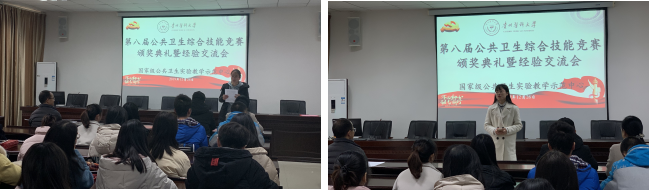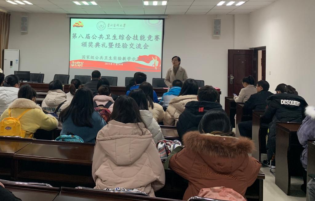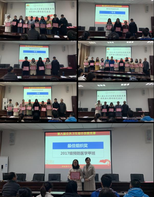 2019年12月26日,国家级公共卫生实验教学示范中心(太阳成集团tyc122cc)第八届公共卫生综合技能竞赛颁奖典礼暨经验交流会在博雅楼二楼学术报告厅举行。公司党委副书记何江、副经理李军、副处级组织员刘亮、实验教学示范中心教师及各年级参赛的本科生同学参加。本次活动由实验教学示范中心教师张雪主持。