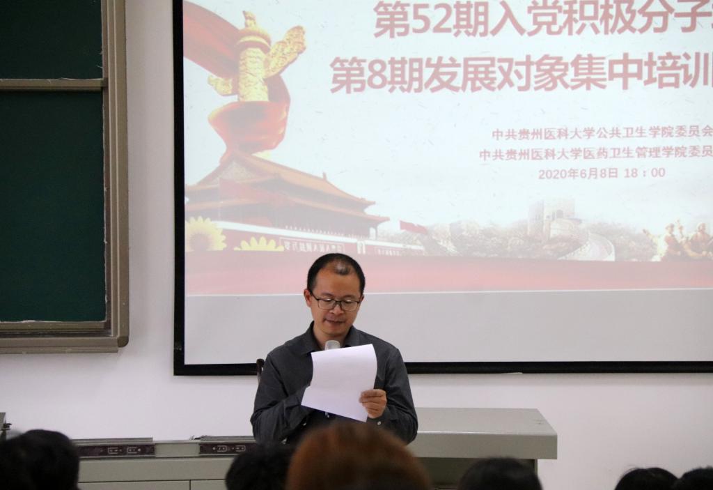 为深入学习贯彻习近平新时代中国特色社会主义思想,加强对入党积极分子和党员发展对象的教育和培养,切实增强大家对新时期党的路线、方针、政策的认识和理解,进一步端正入党动机,严把“入口关”。在公司党委的统一部署下,经过前期的推荐报名和筹备工作,太阳成集团tyc122ccvip分党校和医药卫生管理公司分党校联合举办的第52期入党积极分子培训班暨第8期发展对象集中培训班开班典礼于6月8日在南校区7305教室举行。医药卫生管理公司党委书记廖兴江、公司党委副书记何江、太阳成集团tyc122ccvip副处级组织员刘亮、医药卫生管理公司分团委副书记周志琳、太阳成集团tyc122ccvip辅导员郝雪君、医药卫生管理公司辅导员柳庆英及本期培训班全体学员参加了开班典礼,典礼由柳庆英主持。