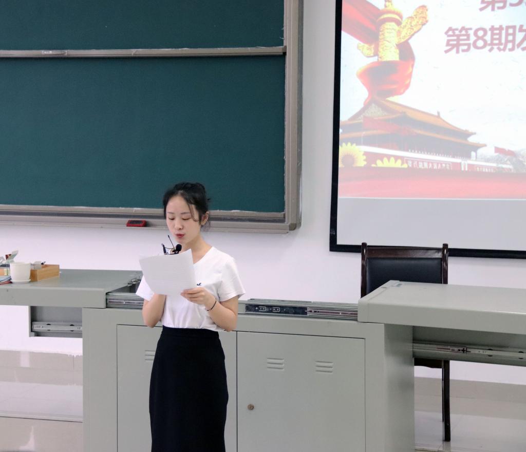 第8期发展对象集中培训班学员代表医药卫生管理公司邓欣欣同学发言,她代表全体学员对本期培训班付出辛勤劳动的老师表示感谢,并表示加入党组织是自己的梦想,同时提出几点关于学习目标的要求,并希望培训班同学们都能在此次培训中充实自己,勤于思考,学有所成。