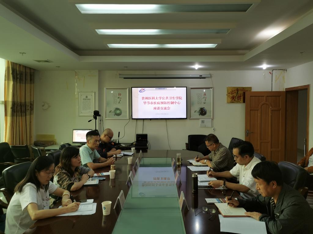 8日下午,杨光红一行与毕节市疾病预防控制中心主任(书记)许文明、副主任刘勇、副主任陈世清及各科室负责人进行了座谈交流,会议由刘勇主持。许文明首先对公司一行的到访表示欢迎,并提前祝到访的各位老师教师节快乐!然后对毕节市疾控中心历史沿革、人才队伍、工作范畴和新冠疫情防控工作等方面作了介绍。杨光红说明了此行到访目的,并就公卫院的基本情况、学科及平台建设、员工培养等方面作了介绍。随后双方就人才培养、教学改革、团队队伍综合能力建设、本科生培养及实习、研究生联合培养基地建设及教学科研合作等方面开展深入交流和热烈讨论。许文明建议培养的公共卫生人才具备能说、能写、能干的综合素质,并成为有情怀的公共卫生从业者;同时希望我们举办短期培训班,以提升疾控人员的流行病学、统计学及卫生检验检疫等相关业务知识;刘勇建议加强双方人员岗位互换,互通有无,以共同提升人员业务水平和实践能力;建议本科生在毕业生产实习阶段在流行病科、慢性病科、职业病科等各专业科室进行轮转,以增强员工的实践能力,毕业后能尽快胜任疾控中心的各项工作。