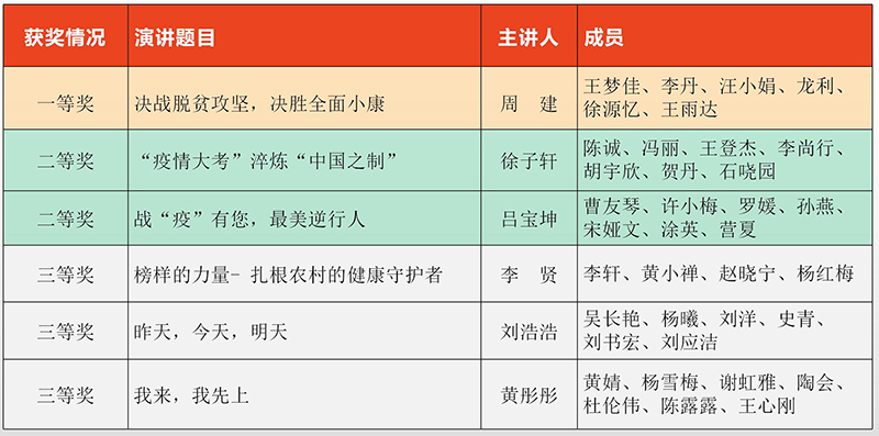 本次微党课比赛以学习小组为单位,分为9个小组参赛,每个组围绕党史学习教育、打赢疫情防控阻击战、学习身边的榜样、脱贫攻坚等内容结合PPT进行微党课演讲,一个个感人至深的初心故事,一句句发自肺腑的话语,一幅幅扣人心弦的画面,诠释着共产党员和新时代青年的责任与担当,令人动容、催人奋进。
