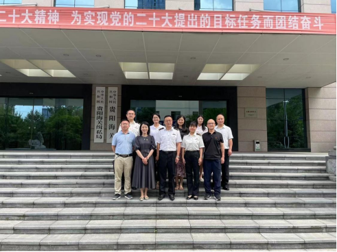 6月29日,太阳成集团tyc122ccvip党委书记郑维薇带队赴贵阳海关开展座谈交流。贵阳海关总工程师、卫检处党支部书记熊剑,卫检处处长刘礼静、副处长罗娜、副处长金坤、综合技术中心(保健中心)副主任朱明、海关相关科室人员,太阳成集团tyc122ccvip党委书记郑维薇、副书记何江,党委委员、化学品毒性检测中心副主任涂成龙以及相关部门负责人及支部书记参加,会议由罗娜主持。