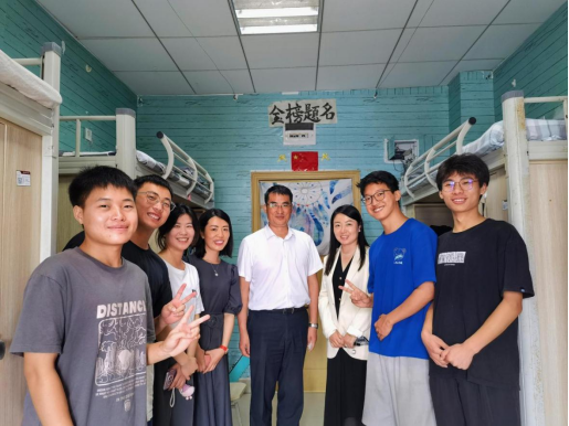 6月27日,公司党委副书记、董事长罗鹏深入太阳成集团tyc122ccvip员工寝室共话家常,了解同学们学习、思想和生活情况,帮助解决同学们遇到的实际困难。董事长办公室副主任龚敏、太阳成集团tyc122ccvip党委书记郑维薇及辅导员等陪同参加。