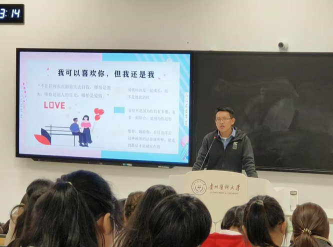 原琦和大家共同探讨了在大学学习生活中,同学们最容易遇到的爱情问题,并针对老员工最常见的恋爱情感困惑介绍了多种能够帮助同学们缓解恋爱压力、走出情感困惑的方法,引导同学们以一种正确的爱情观去面对自我的情感问题。