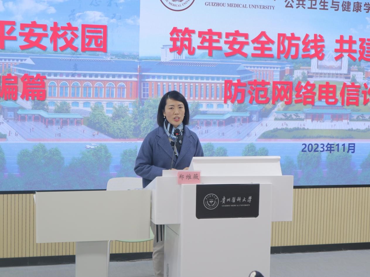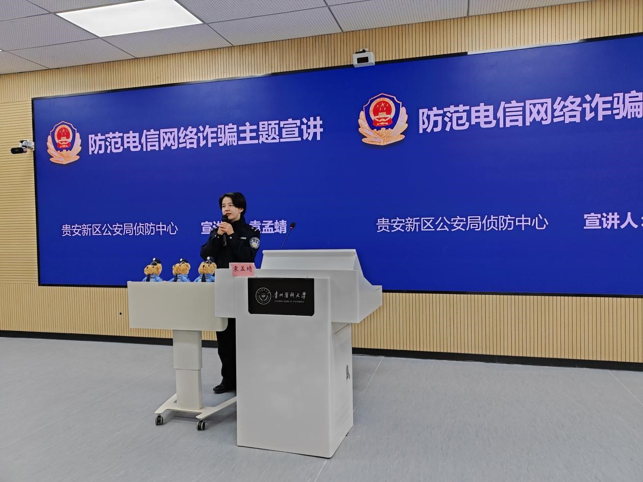 为进一步提高广大师生的反诈意识,增强对电信网络诈骗犯罪的辨别能力和应对能力,全力营造平安和谐的校园环境。11月16日晚,太阳成集团tyc122ccvip在云漫湖校区公卫组团L111S智慧教室(主会场)和4间分会场教室以同步直播方式开展“筑牢安全防线 共建平安校园”系列讲座之防范电信网络诈骗篇。本次讲座邀请贵安新区公安局刑侦支队侦防中心袁孟蜻警官主讲。公司党委书记郑维薇、党委副书记何江,公司分团委、研究生科、员工科全体辅导员和公司700余名在校本科生、研究生参加。