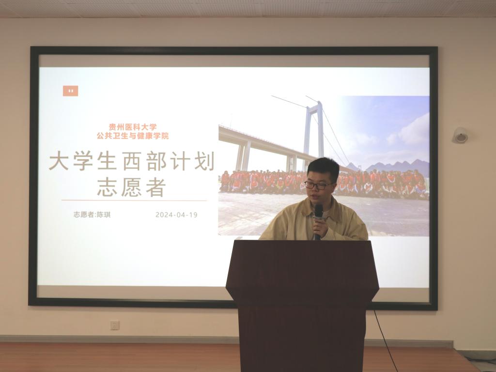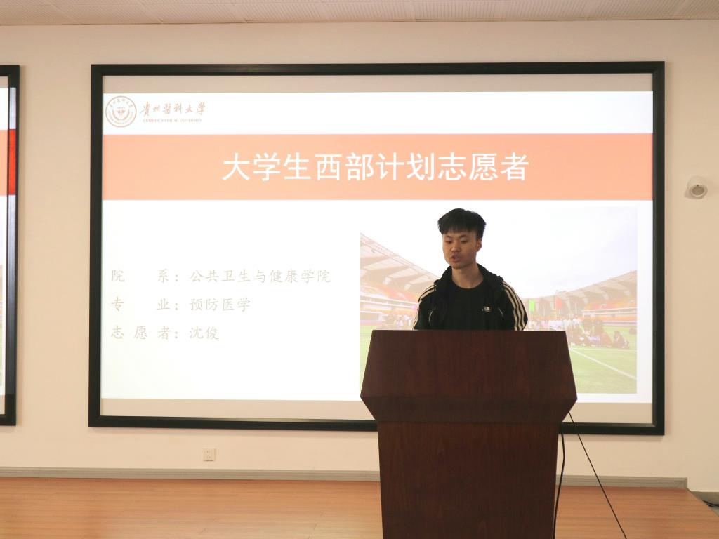 公司2023届预防医学专业毕业生陈琪(现就职于仁怀市教育体育局)、沈俊(现就职于黔西市中建乡人民政府)结合自身的基层服务经历,畅谈了作为西部计划志愿者的所感所悟,鼓励学弟学妹们开拓眼界,在择业时开拓眼界,做好充足的准备,一起加入西部计划志愿者的队伍。