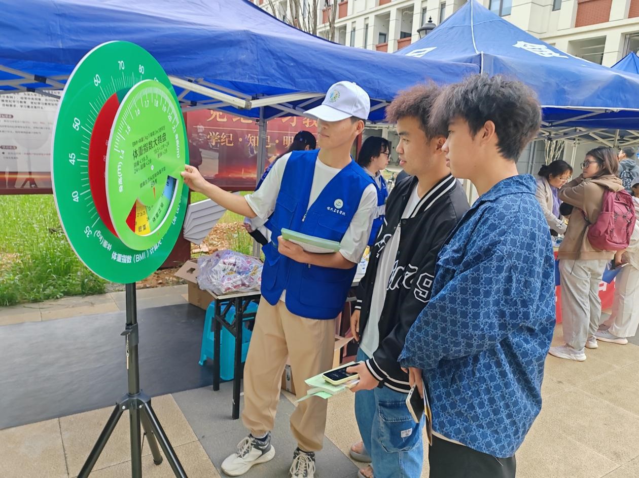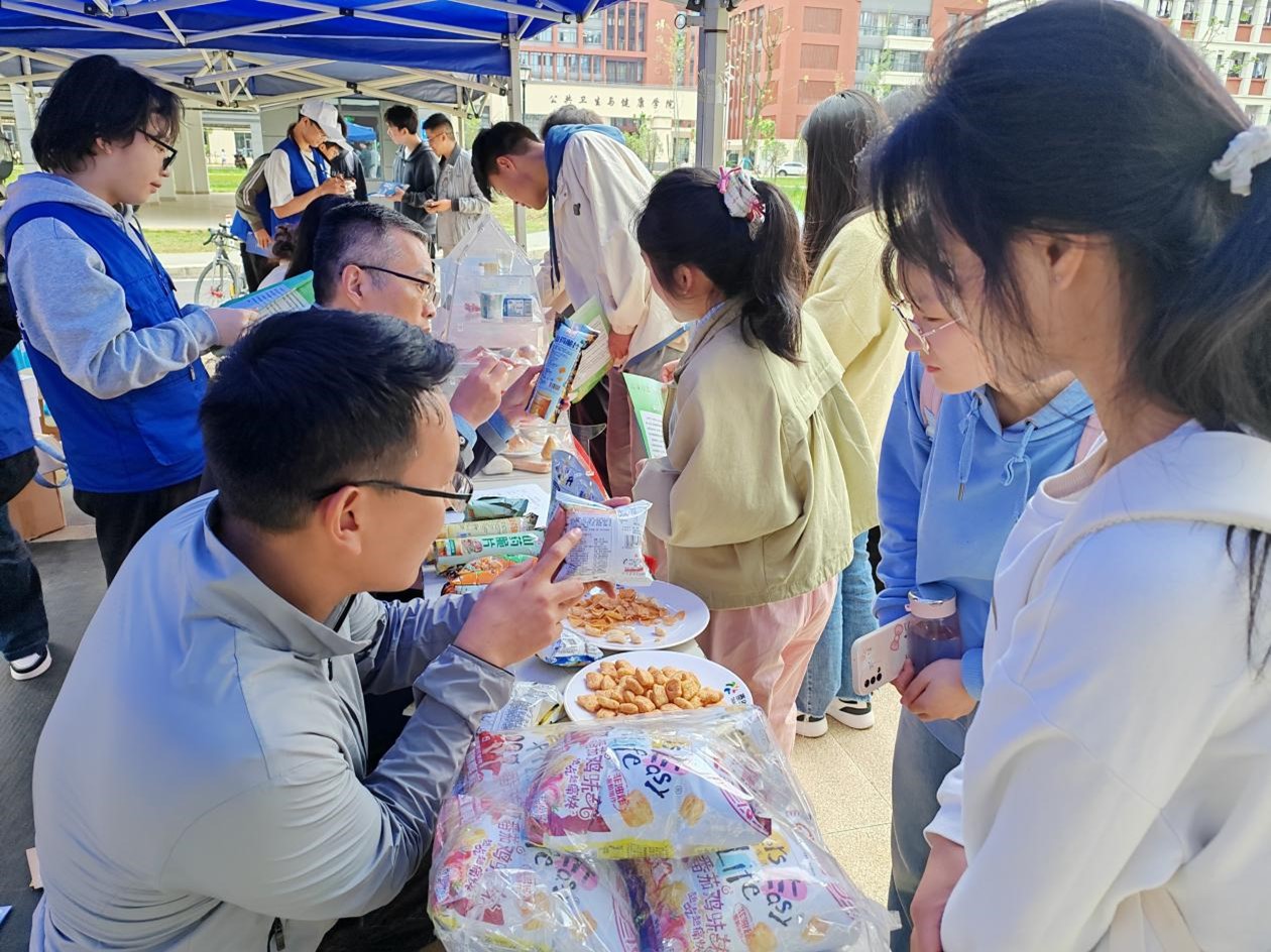 在活动现场,专业导师们对同学们的学习状况、学业规划进行了解并给予了充分指导,同时围绕“中国居民早餐营养健康模式”“如何看懂食品说明书”“轻食减脂营养餐食谱搭配”“科学健身”等内容开展了互动交流,强调了2024年口号:“奶豆添营养,少油更健康”。活动现场同学们通过计算BMI体重指数结合健康转盘查看自己的的健康小提示。食品相关专业的志愿者们配合实物,为同学们讲解了平时喜欢的各种零食包装的营养标签与配料表,分析其中的主要成分以及可能存在的健康风险,现场活动反响热烈,发放了近1000份宣传资料。