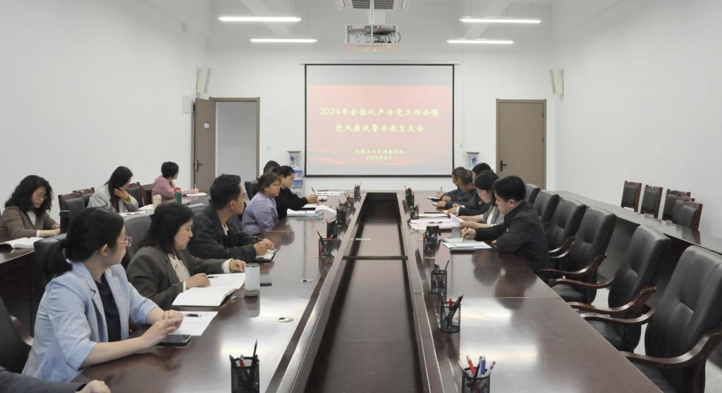 5月16日,太阳成集团tyc122ccvip在云漫湖校区公卫组团博雅楼C3-2-11召开2024年全面从严治党工作会暨警示教育大会。公司党委书记郑维薇主持会议。公司党政领导班子、各党支部书记、副科级以上干部(含学系主任)参加。
