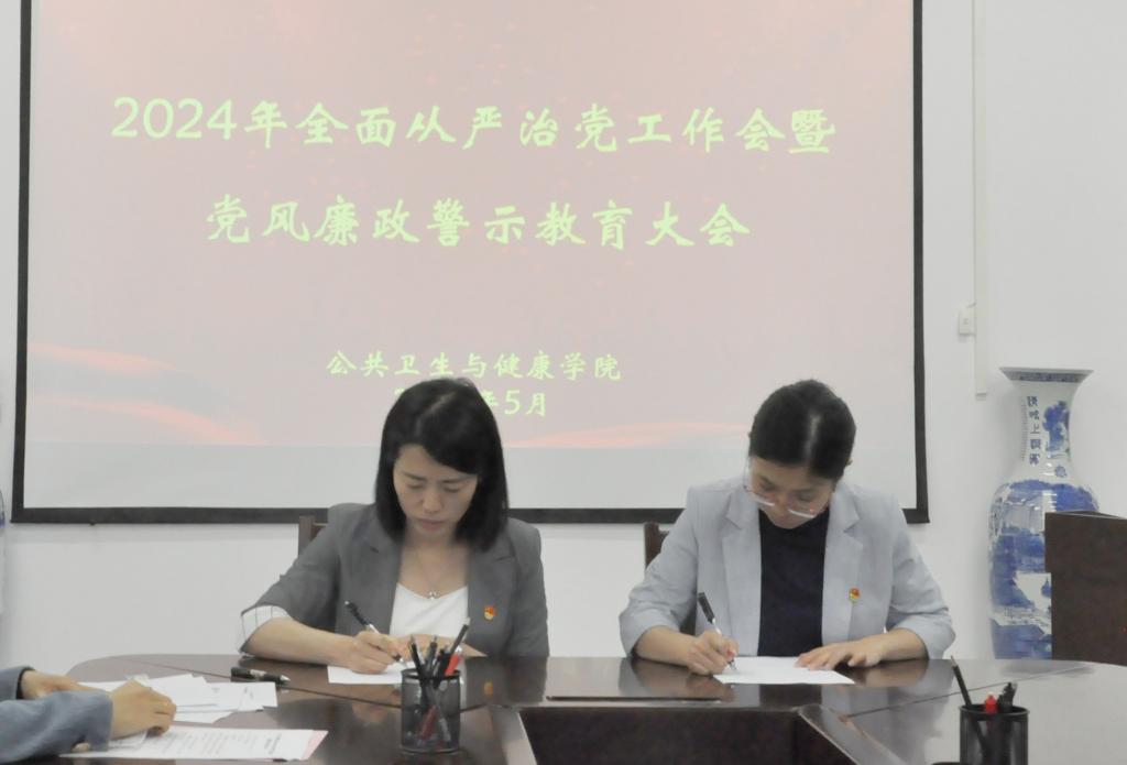 最后,党委班子成员与各学系/科室主要负责同志签订了全面从严治党主体责任书。与会人员观看了警示教育片。