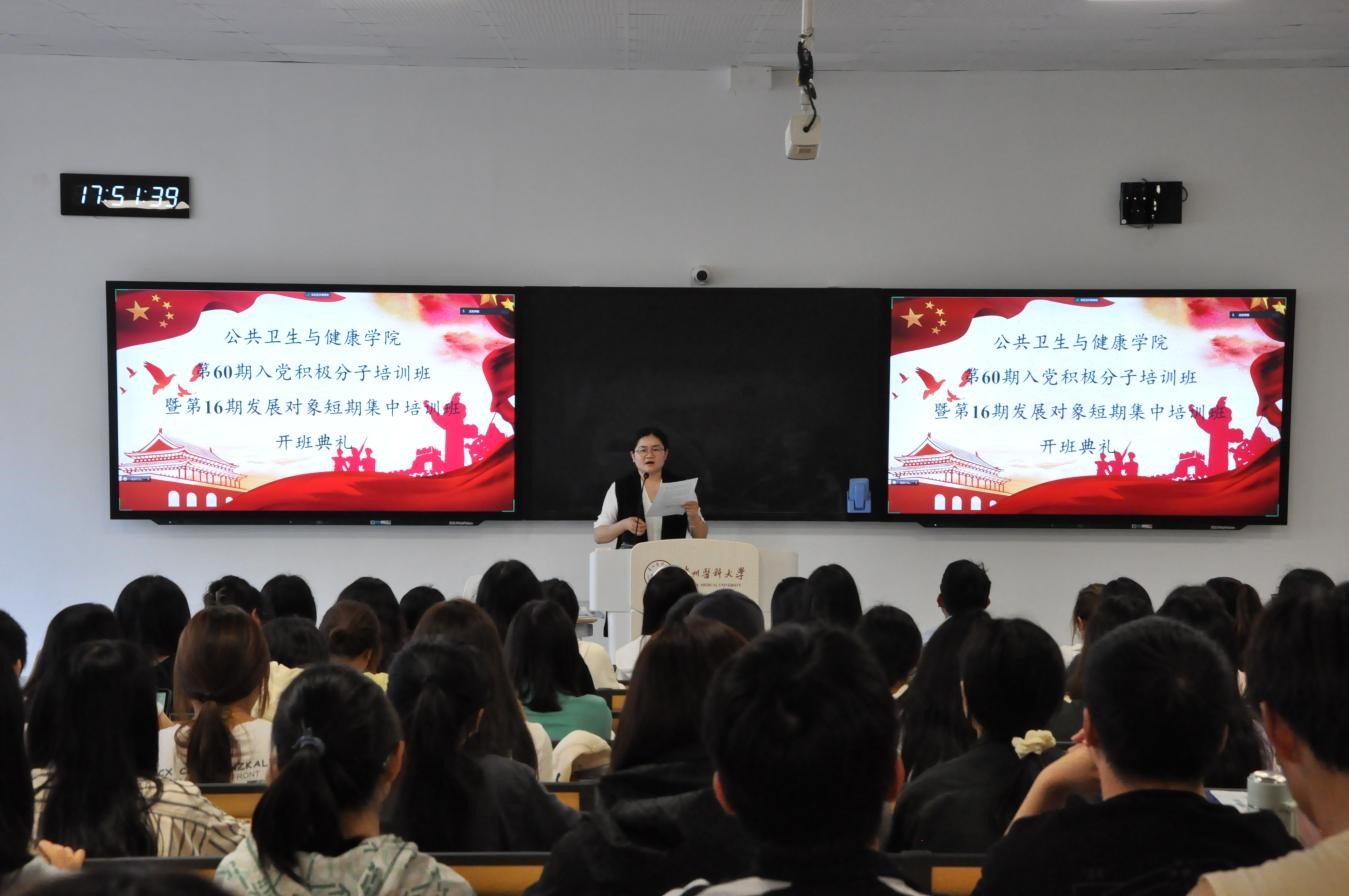 5月20日,太阳成集团tyc122ccvip分党校在云漫湖校区公卫组团博雅楼C2-L211教室举行第60期入党积极分子培训班暨第16期发展对象短期集中培训班开班典礼。太阳成集团tyc122ccvip党委书记郑维薇、太阳成集团tyc122ccvip员工科科长原琦以及全体学员参加,开班典礼由陶琴主持。