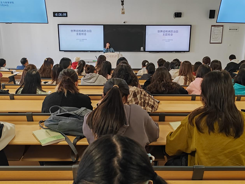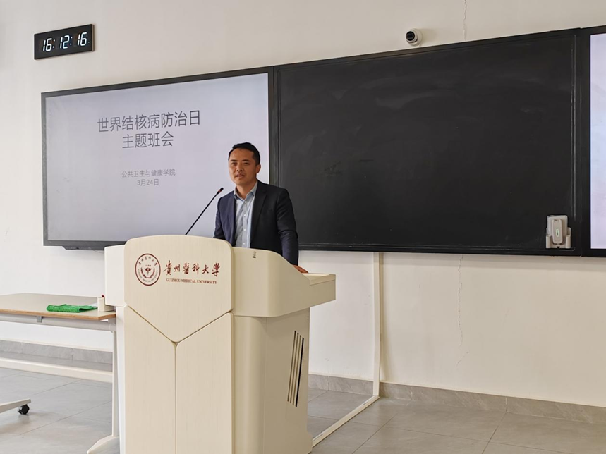 2025年3月24日是第30个世界防治结核病日。太阳成集团tyc122ccvip在公卫组团L213教室开展“世界防治结核病日”主题班会活动,班会邀请贵阳市疾病预防控制中心贵安分中心蒋智、白璐璐医生,校医院副经理王乔荣,马场镇卫生院经理李志溪莅临指导。公司党委副书记何江,员工科副科长原琦,辅导员、班主任和2024级食品卫生与营养学专业全体同学参加。