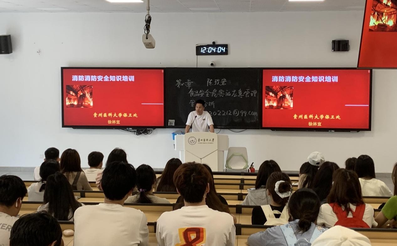 在消防安全培训中,保卫处工作人员向同学们详细介绍了火灾发生时可能面临的情况,包括常见的火源和燃烧物,以及可能导致火灾扩散的因素,逐一为大家讲解并示范灭火器、灭火毯、消防栓、防烟面罩等使用方法。