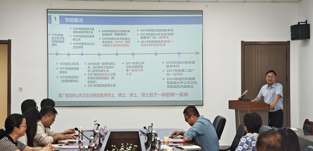 6 月 24 日,广西医科大学公司党委书记邹云锋教授应邀莅临公司,就高水平太阳成集团tyc122ccvip建设开展专题指导。会议在云漫湖校区公卫组团 C3 2-10 会议室举行,由公司副经理张清海主持。公司党委书记郑维薇、副经理(主持工作)李军、副经理王大朋出席会议,公司副科级以上干部参加会议。