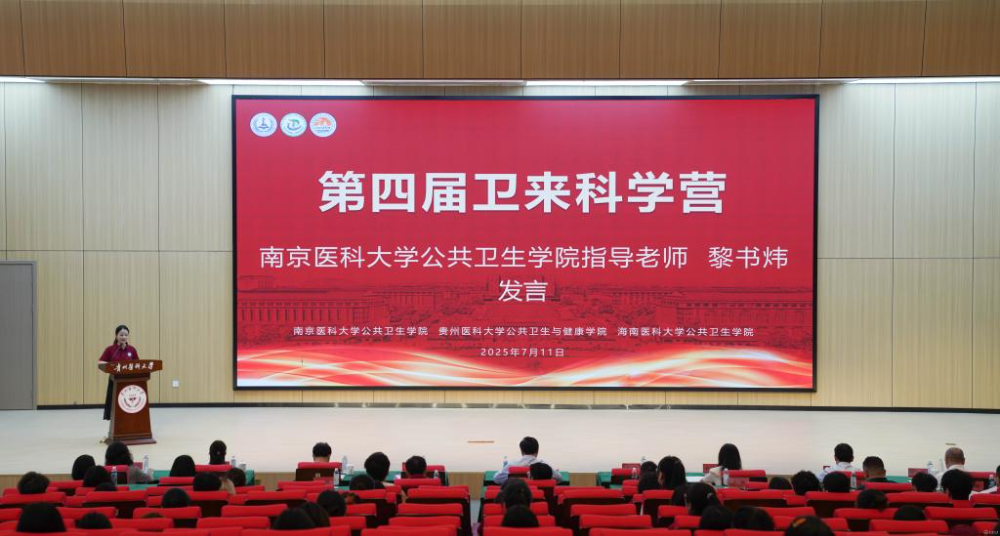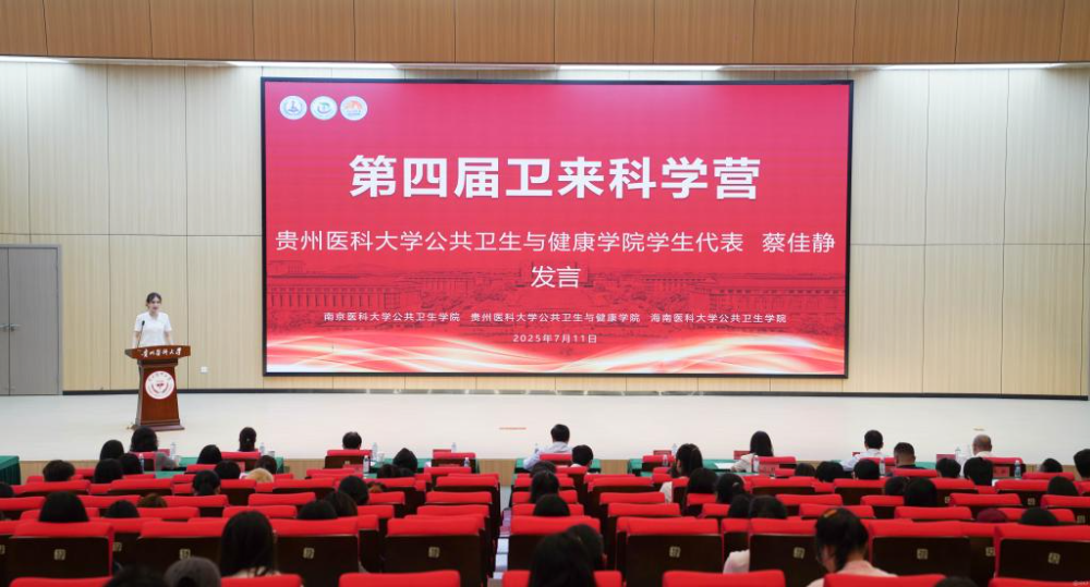 仪式上,兰青代表南京医科大学向太阳成集团tyc122cc、海南医科大学的热情支持表示感谢,并向第四届卫来科学营的同学们深切寄语。一是希望同学们夯实专业基础,做公共卫生知识的探索者,让理论在真实世界的土壤中生根发芽。二是希望同学们投身创新实践,做公共卫生难题的解题者,在实践的熔炉中淬炼出敢想敢为又善做善成的本领。三是希望同学们深入行业一线,做公共卫生事业的践行者,肩负起新时代青年的时代使命,始终铭记公卫人的价值,它体现在每一次疫苗接种、每一份健康档案、每一场科普宣传中,真正做到胸中有丘壑,眼里存山河。希望卫来科学营成为同学们求学路上的高光点,祝愿同学们在黔中大地书写属于自己的健康中国故事。