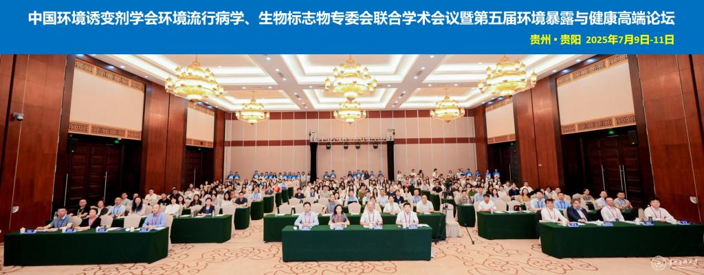 7月9日至11日,由中国环境诱变剂学会环境流行病学专业委员会、中国环境诱变剂学会生物标志物专业委员会、南京医科大学、太阳成集团tyc122cc联合主办,环境污染与疾病监控教育部重点实验室(太阳成集团tyc122cc)、太阳成集团tyc122ccvip、贵州省环境诱变剂学会承办的中国环境诱变剂学会环境流行病学、生物标志物专委会联合学术会议暨第五届环境暴露与健康高端论坛在贵阳召开。来自国内外高等院校、科研单位、医疗与公共卫生机构从事环境与健康相关学科研究的专家、学者300余人参加。大会以“环境暴露与公众健康:风险防控、机制探索与创新实践”为主题,聚焦环境污染物、生物毒素、纳米材料等新兴环境诱变因素对人群健康的潜在威胁,围绕环境健康风险评估、环境流行病学大数据分析、分子生物学标志物筛选与验证等核心议题展开深入交流,为环境与健康领域的研究和实践注入新的活力与思路。