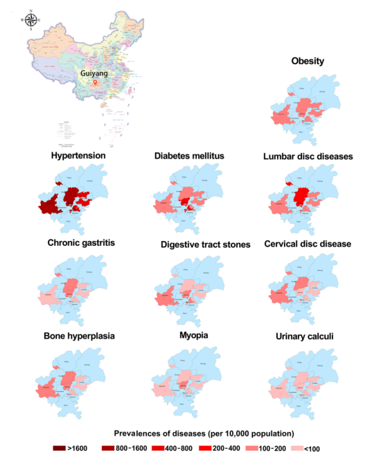 3 中国贵阳居民慢性非传染性疾病的地区分布特征
