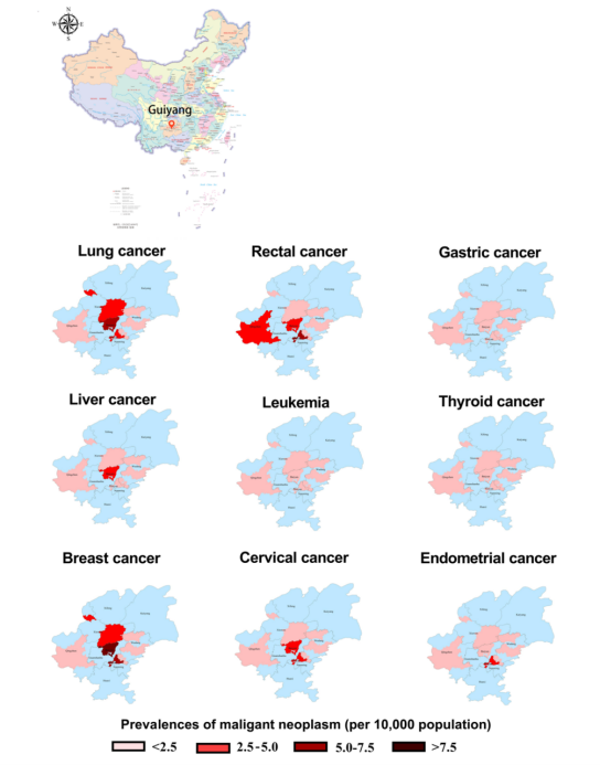 4 中国贵阳居民恶性肿瘤的地区分布特征