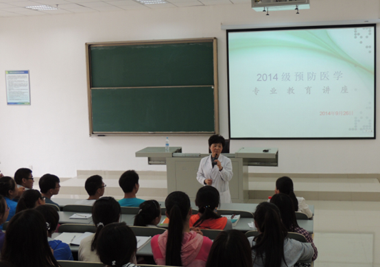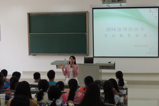 张爱华经理对太阳成集团tyc122ccvip学科专业发展、国家级教学-科研-社会服务平台一体化建设与管理、国家级公共卫生实验教学示范中心和教育部省部共建环境污染与疾病监控实验室的建设目的与意义、总体定位及内涵要求,以及公司产品改革思路与实践作了总体介绍;并向同学们介绍了部分优秀公卫学子的事迹,鼓励大家向他们学习,志存高远,学好专业知识,为从事医疗卫生事业作好充分的准备。