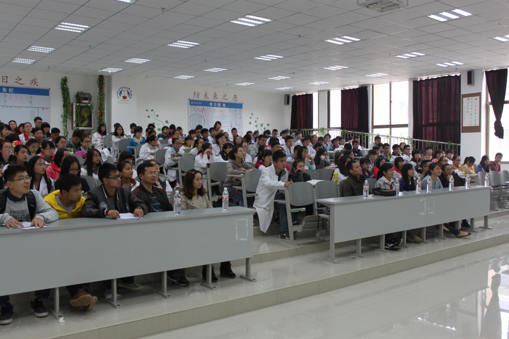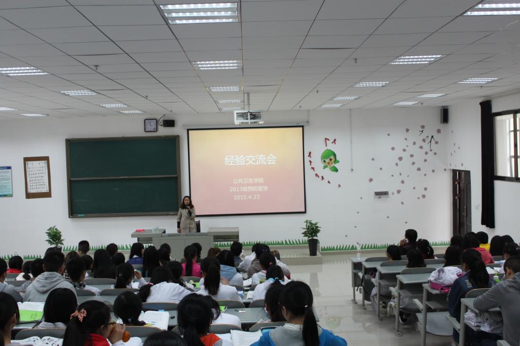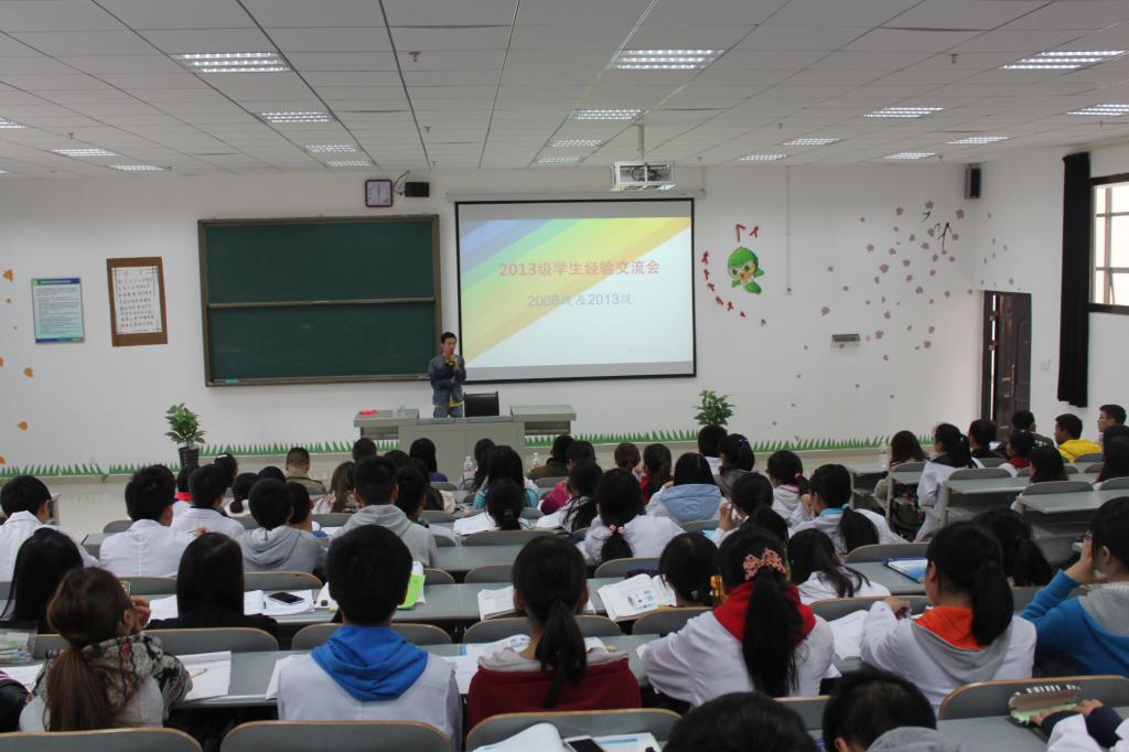 ,太阳成集团tyc122ccvip在花溪校区4301教室召开了考研经验交流会。太阳成集团tyc122ccvip员工管理科科长刘亮、辅导员周洪媛、刘海等7名优秀在读研究生与2013级预防医学、2012级卫生检验180多名同学进行交流。交流会由刘海同学主持。