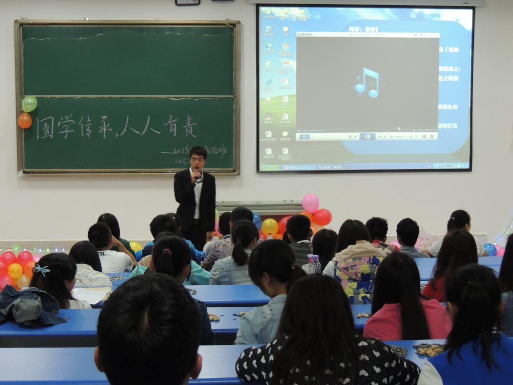 最后,刘亮老师对本次班会作了总结,对同学们的表现给予了充分的肯定,阐述了学习国学、掌握国学知识的重要意义,希望每一位同学在学好专业知识的同时加强中国传统文化的学习。