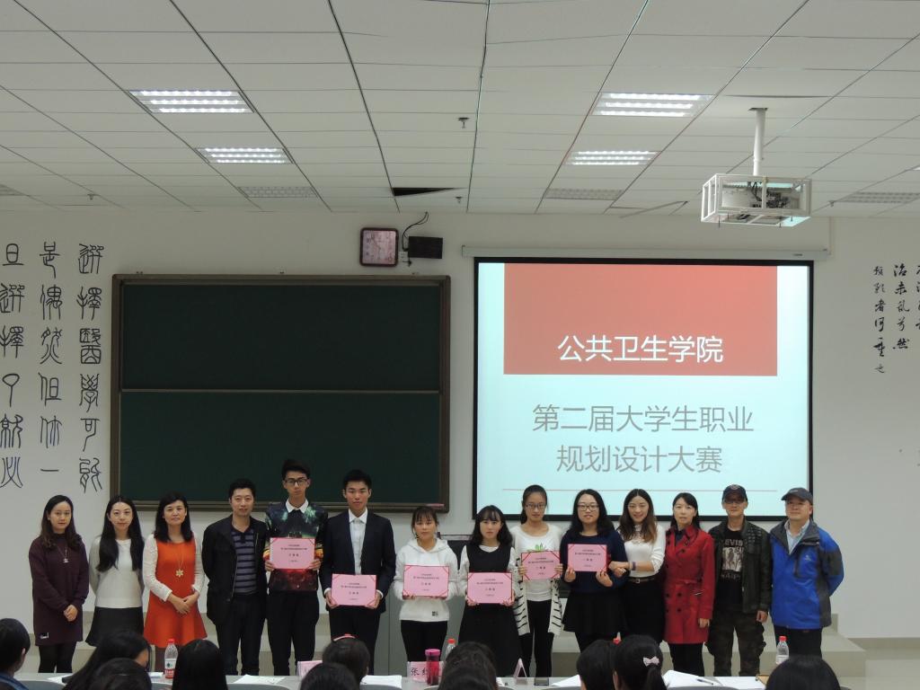 最后,按竞赛程序,根据决赛成绩和评委评议意见,评选出一等奖1名【李梦阳(预防医学2014级)】,二等奖2名【胡宇欣(预防医学2014级)、叶婧(预防医学2014级)】,三等奖3名【潘孟婕(食品卫生与营养学2014级)、蔡浚哲(预防医学2015级)、张俊(食品卫生与营养学2014级)】。同时,针对活动中组织工作突出的班级,评选出组织奖2名【2014级预防医学班、2015级食品卫生与营养学班】。各位领导嘉宾、评委教师为获奖员工颁发奖状,并与获奖选手合影。