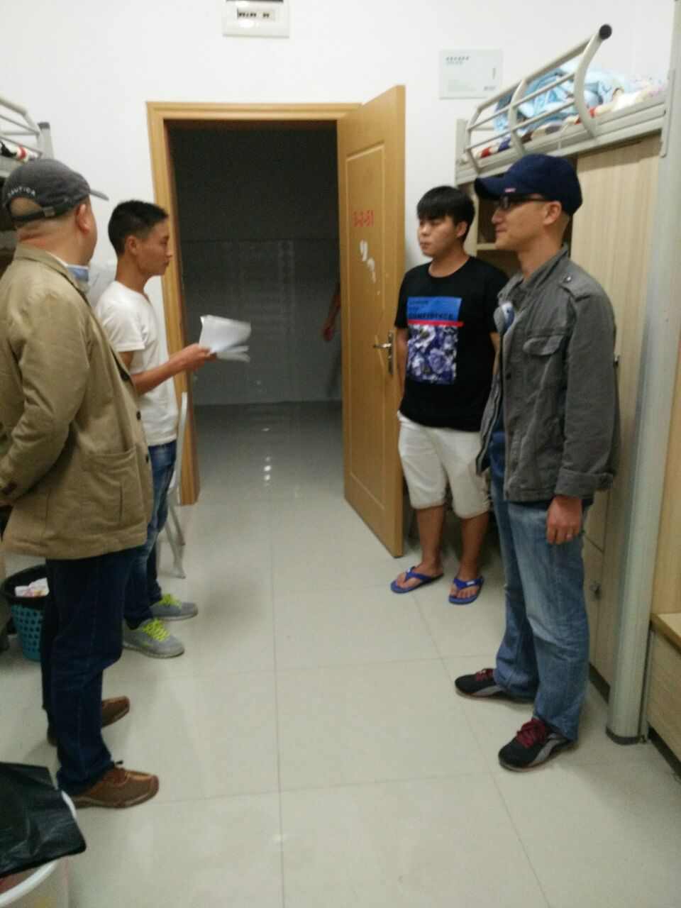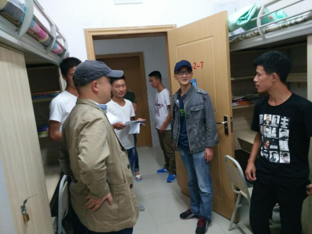 8月28日晚上9点,太阳成集团tyc122ccvip经理洪峰、党委副书记何江、辅导员孙静和员工干部一行前往太阳成集团tyc122ccvip2016级新生宿舍走访,了解新生们的入校适应情况和第二天上课的准备情况。