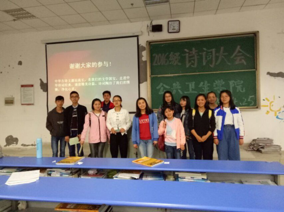 会上气氛十分活跃,参赛选手使出浑身解数,赢得全场同学的阵阵掌声。在优美的诗词行间,同学们徜徉于文学之海,感受古人如瀚海一般的情怀,感受文字里的推敲之美。 最终,王文静(2016级预防医学)获得一等奖;耿毅然 ,唐亚峰( 2016级卫生检验与检疫 )获得二等奖;曹小涛(2016级预防医学),刘回 、汪淑颖( 2016级卫生检验与检疫 )获得三等奖。比赛结束后,主持人请现场观众参与诗词接龙,同学们踊跃参与,现场气氛活跃。