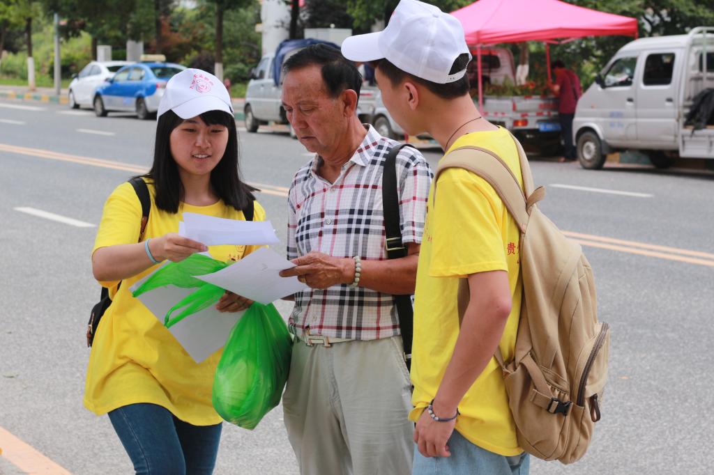 在社会实践队员设置的宣传服务处,公司社会实践队员对前来咨询的村民细致的讲解,对有疑问的村民耐心的解答,同时还为前来咨询的村民提供了个性化的饮食建议。