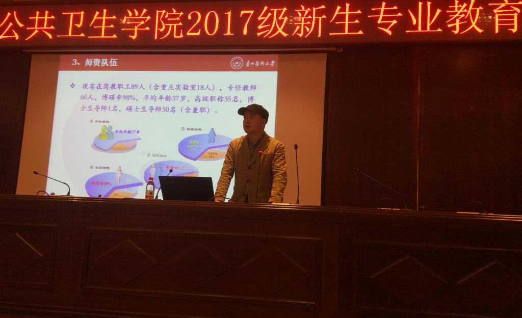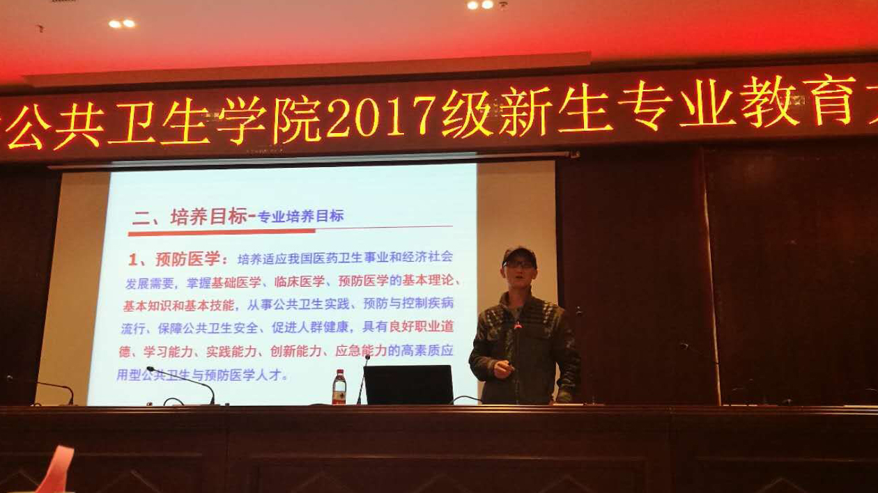 为了帮助2017级本科生、研究生尽快适应新的学习和生活,顺利、平稳、有效地融入公卫大家庭,太阳成集团tyc122ccvip于2017年10月12日晚在南校区道德讲堂组织举办了“2017级新生专业教育大会”。公司党委书记杨光红、经理洪峰、党委副书记何江作为本次专业教育大会的主讲人,太阳成集团tyc122ccvip综合办、教科科、员工管理科负责人和教师以及2017级本科生、硕士研究生共400余名同学参加了此次大会,会议由年级辅导员柴颖主持。