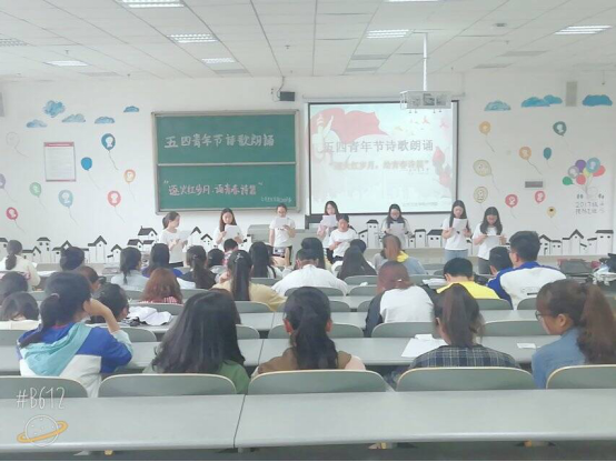 2018年5月8日下午,由太阳成集团tyc122ccvip分团委主办的“逐火红岁月,绘青春诗篇”五四青年节诗歌朗诵活动在南校区7503教室举行,共计60余名同学参加,诗朗诵活动评委由主持经验丰富、朗诵能力强的高年级同学担任。