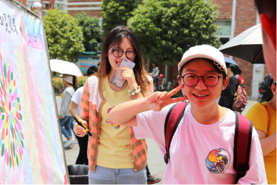 在“笑随心动,今天你微笑了吗?”活动中,同学们通过在活动现场发放笑脸贴纸,以增进同学和师生之间的情谊。在“给一年以后的自己的一封信”活动中,同学们在纸上写下一年后对自己的期许、鼓励、祝愿。在“签名仪式”活动中,同学们在签名板上签名并写下对公司八十周年校庆的美好愿景。