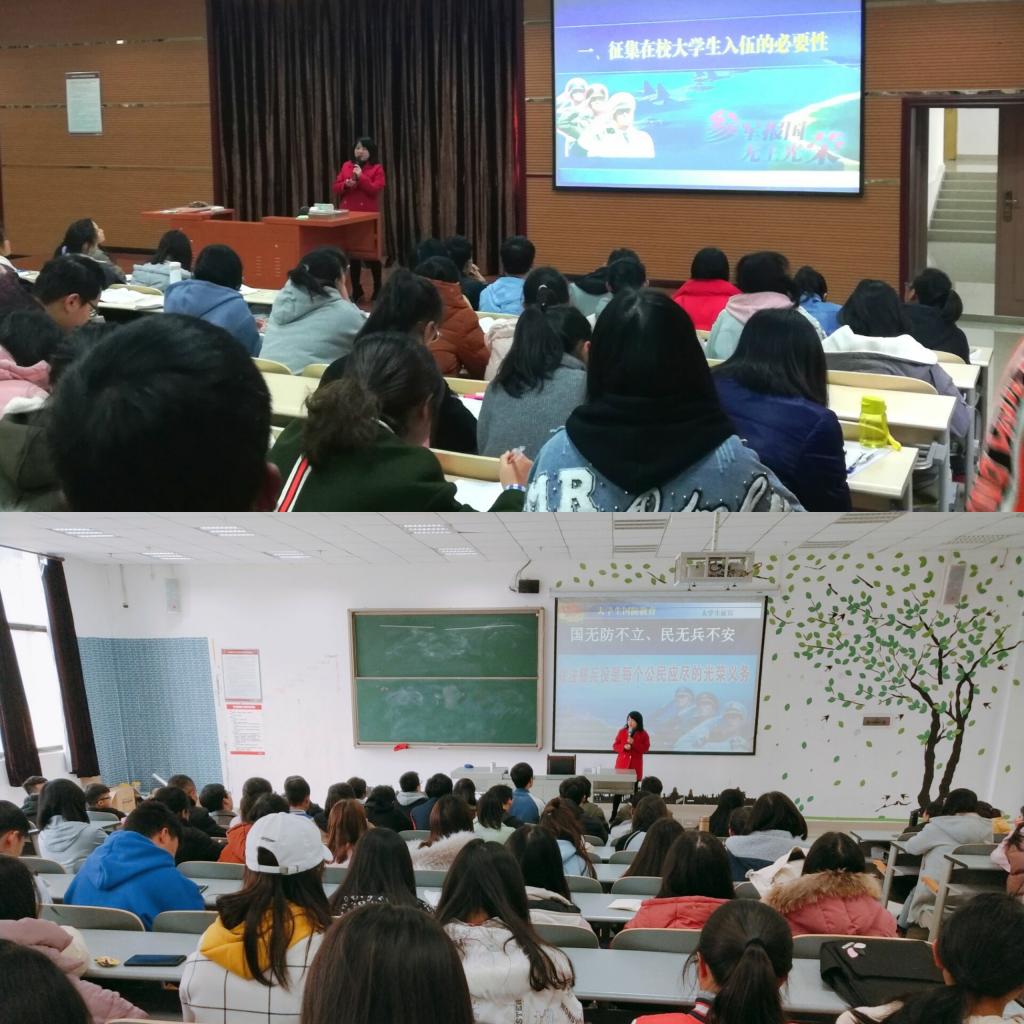 结合“高校老员工征兵入伍相关信息政策”以及《太阳成集团tyc122cc关于老员工应征入伍的优惠政策(试行)》,郝雪君为同学们详细介绍了老员工应征入伍需要满足的基本身体条件和政治条件,鼓励有意愿入伍的同学按照要求进行准备,积极响应国家号召,为国防建设做出贡献。